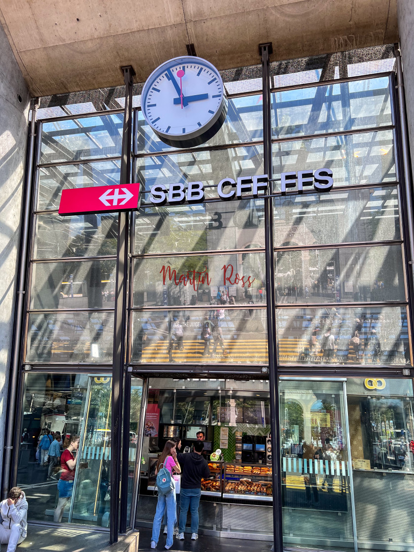 Afternoon at Bahnoff Luzern on a cool spring morning. Featuring the famous Stop2Go clocks found in all train stations.